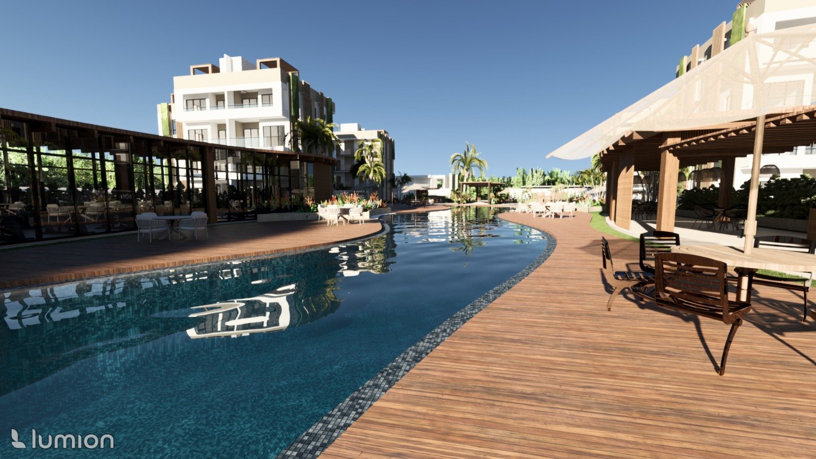 Apartamento moderno de 2 habitaciones con patio amplio en Punta Cana, ubicado en el proyecto residencial Forest Punta Cana, en Bávaro – El Farallón.