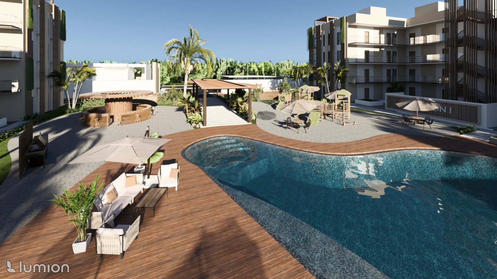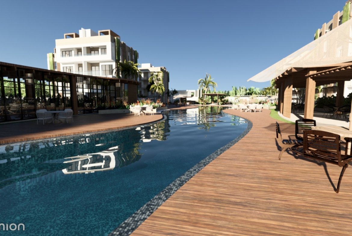 Apartamento de 2 habitaciones con jardín privado en venta en Punta Cana, dentro del proyecto residencial Forest Punta Cana, ubicado en El Farallón, Bávaro.